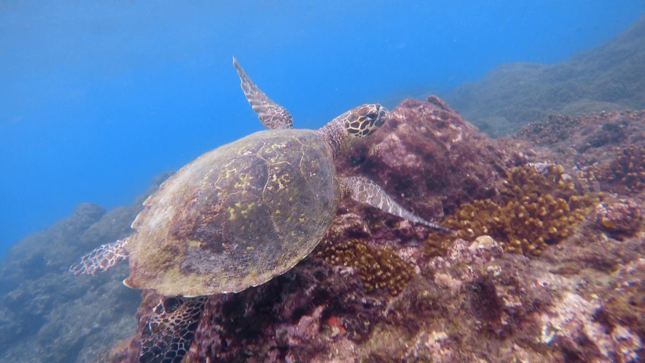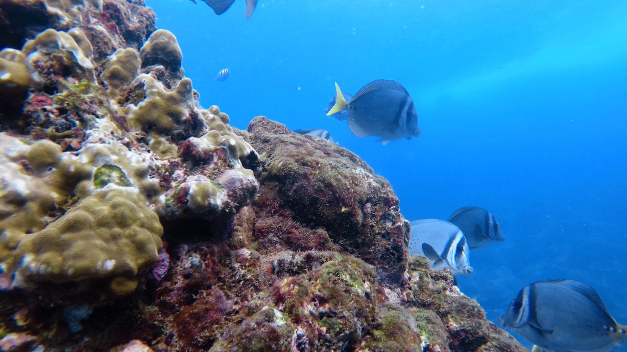 You may see schools of fish, graceful sea turtles, and sometimes white-tip reef sharks.